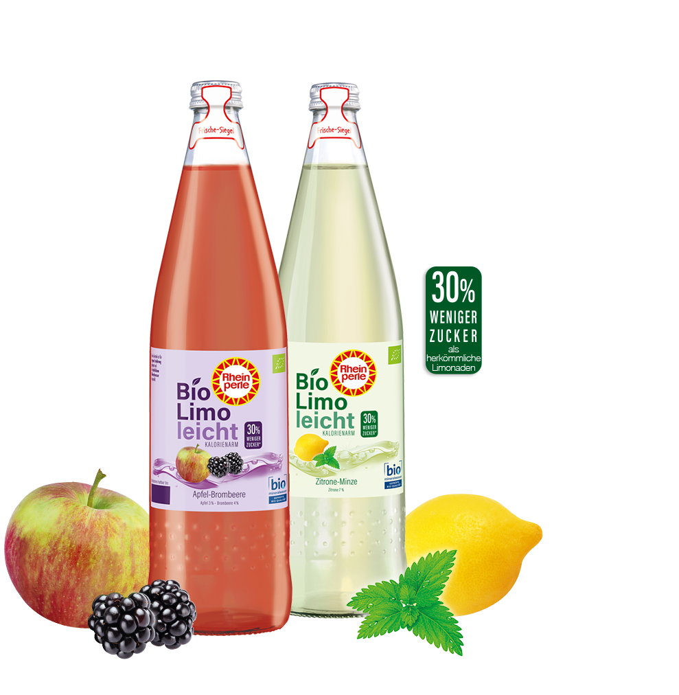 Entdecke Bio Limo leicht von Rheinperle als kalorienarme Erfrischung. Die beiden Limosorten sind nur dezent gesüßt. Sie enthalten 30 % weniger Zucker als herkömmliche Limonaden und keine weiteren Süßungsmittel! Verwendet werden ausschließlich Zutaten aus kontrolliert ökologischem Anbau – das erkennt man am EU-Bio-Siegel. Besonders bio ist Rheinperle Bio Limo leicht durch ihre Herstellung mit unseren zertifizierten Bio-Mineralwässern – das belegt auch unser ausführlicher Auditbericht.